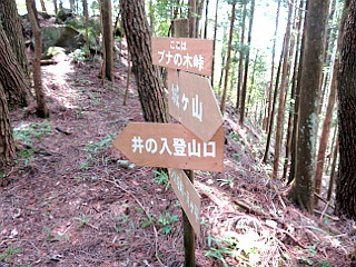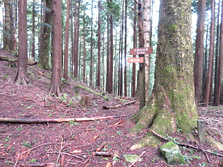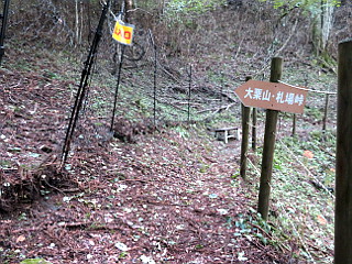 | 大栗山の山頂表示 | 札場峠の月ヶ平登山口 | 月ヶ平山頂 |