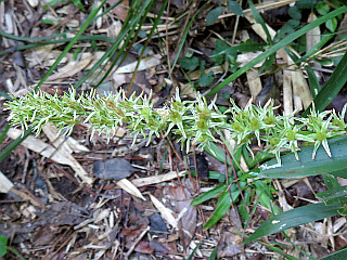 | 山行記 | ●9月に入り、そろそろ秋の花が咲き始めたかと、比丘尼へ行くことにした。しかし、この日は朝から太陽が照りつけ暑そうなので、首掛け扇風機を持って出かける。平日のこの暑い日に、登山口の比丘尼駐車場には一台の車も停まっていなかった。 ●車を降り、靴を履いているだけで汗が噴き出す。支度を済ますと歩き始めるが、夏草が伸び放題で、しかも朝露で濡れているので、ズボンは歩き始めからびしょ濡れだ。花も、背の高い草のおかげであまり目立たない。 ●それでも、東屋への道沿いにはキキョウやコガンピ、アキカラマツ、サワシロギクなどの秋の花が咲き始めたところだ。さらに進むと、オミナエシやナガバノコウヤボウキ、ワレモコウなどが加わり、すっかり秋の佇まいだ。 ●覆い被さるササをかき分けながら、おすすめの小径から外れ、比丘尼城址、愛の鐘を経て金山へ向かう。汗を滴らせながら急な坂を登り切ると金山山頂だ。金山山頂で少し休憩をして、県境稜線を歩いて雨生山へ向かう。 ●天気は、雨が降りそうなぐらい曇ったり、かとおもうと晴れたりとはっきりしない。裸地に出ると、そのタイミングで晴れてきた。以降、日影の無い行程中晴れていて、熱中症を警戒しながら歩いた。 ●展望ピークから雨生山を往復し、雨生山反射板経由で新城方面へ下降するが、コガンピやワレモコウ、アキカラマツが咲き、センブリの葉も確認することができ、残暑の中にも確実に秋の気配を感じることができた。 ●林道に下り、その林道を歩くと、オトギリソウやメドハギ、ヤハズソウ、ガンクビソウ、クルマバナ、キツネノマゴなどが咲き、既にシュウブンソウまで咲き始めていた。 ●鉄塔入口からおすすめの小径に戻り、暑さに耐えながら裸地を抜け、西登山口からは農道を歩いて車を置いた比丘尼駐車場まで戻るが、駐車場手前の池の法面には、ツルボやコマツナギ、ワレモコウ、タカサゴユリなどが咲いていた。 |