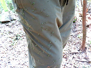 | たちまちササクサの実だらけ | ストックに付く蜘蛛の巣とササクサの実 | 仁崎峠 |