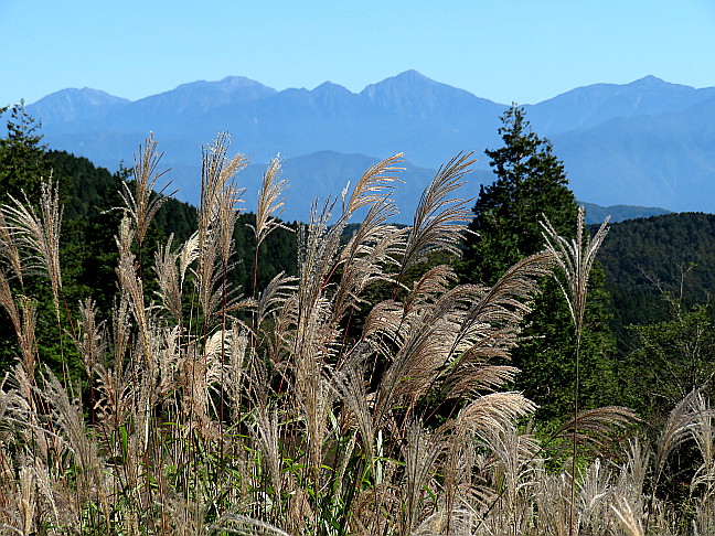 | 山行記 | ●数日前、地方紙にウメバチソウが咲き始めたという記事が載ったので、一日中よく晴れるという予報のこの日、出かけてみることにした。豊川を出発するのが少々遅くなったが、近くの24時間飲食できる店舗で朝食を摂り、茶臼山高原へ向かった。 ●この日、車を停める小鳥茶屋の駐車場に着いたのは既に10時近くになっていたが、支度を済ますと早速歩き始める。この日は予報どおり、朝から眩しい青空が広がるが、先月ここを訪れた時と比べて気温が低く、Tシャツ1枚というわけにはいかない。 ●自然観察路入口から、ややササのうるさい道を進み、つるつるに滑る木道を慎重に歩いていくと、再び舗装道に出るので、そこから花を探してキャンプ場を一回りする。 ●アケボノソウはほとんど花季が終わっていて、もう下の方の花しか残っていない。目当てのウメバチソウだが、キャンプ場の池の土手にぽつぽつと咲いていたが、蕾の方が多く、まだこれからといった感じだ。 ●キャンプ場からカエル館に出るので、そこから山道を登りもう一度舗装道を横切るとそこが東側登山ルートの入口だ。そこから道は本格的な山道になり、途中雷岩が見えてくれば程無く茶臼山の山頂一角の、鉄製展望台跡に出る。 ●後は平坦な道を少し歩いていくと立派な展望台のある茶臼山山頂に到着だ。展望台に登れば、南アルプスの塩見岳以南を見ることができ、隣の萩太郎山や三ツ瀬明神山を始めとする奥三河の山々もはっきりと見ることができた。 ●茶臼山山頂からは、一旦第2駐車場方面へ下り、途中から森の広場方面へ幾つかの分岐を経ながら下る。一度樹林帯から出て、再び樹林帯に入り、緩やかに少し下れば森の広場に到着だが、森の広場のエンシュウツリフネソウは既に終了していた。 ●森の広場からは、国民休暇村を通り、茶臼山周回道路に出ると、それを歩いて先程車を置いた小鳥茶屋の駐車場まで戻るのだが、先月ここを訪れてからわずかひと月で、日向を歩いてもそれ程暑さを感じない時季に変わってきたことを実感した。 |