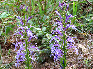 | 山行記 | ●超大型台風が接近中で、大型故に早くから影響が出始めるということだが、朝はまだ日が差したりしているので、出かけてみることにした。台風接近中の平日ということもあって、いつも賑やかな駐車場には10台程度の車しか停まっていなかった。 ●支度を済ますと歩き始める。葦毛湿原に至る道沿いには、ヌマダイコンやツクシハギが咲いている。葦毛湿原の入口ではミゾソバが一面に咲き、ヤナギタデなどもよく咲いていた。 ●葦毛湿原には、マアザミやイワショウブ、シラタマホシクサ、ワレモコウ、サワシロギクなどが咲き、スイランは、まだ朝なのでまだ開いていないものが多かった。水のある所では、ミミカキグサやトウカイモウセンゴケなどを見ることができた。 ●葦毛湿原から山道に入り、山腹道を緩やかに登っていく。途中、岩崎自然歩道との合流点を過ぎ、さらに登ると一息峠に着く。一息峠からやや傾斜が増すが緩やかに登っていくと、行く手に急な階段が現れるが、それを登れば弓張山脈の縦走路に出る。 ●縦走路はそこから少し急に登り、それを登ると弓張山地の稜線や遠州灘などを見渡すことができる。そこから道は緩やかになり、送電線鉄塔を過ぎると程無くNHK二川テレビ中継局のあるピークに着く。 ●ロープで囲われた所には、オケラやツリガネニンジン、アキノノゲシなどが咲いているが、これらが全て自然のものかはよくわからない。 ●この日は、神石山まで行くつもりだったが、しだいに雲が厚くなり、いつ雨が降ってもおかしくない感じなので、この日は座談山か船形山までにして帰ることにした。 ●NHK二川テレビ中継局から急坂を下り、登り返せば送電線鉄塔の立つ座談山山頂だ。ここからは展望が広がり富士山なども見えるはずなのだがこの天気では望むべくも無い。 ●座談山から再び下ると、船形山のコルに着く。ここからの山腹道を戻れば先程の階段の下に出るのだが、少し足を延ばして船形山まで行っておくことにする。 ●船形山のコルから緩やかに登れば、船形山の細長い山頂部の一角に出るので、そのまま進めば船形山山頂に着く。かつて城が立っていたという山頂には送電線鉄塔が立っている。 ●船形山からは、先程の船木山のコルまで戻り、山腹道を歩いて、階段下から来た道を戻る。樹林帯の中だが、雨の音が聞こえ始めた。葦毛湿原に戻った時には一旦雨が止んでいたが、駐車場戻る際には雨足も強くなってきた。 |
