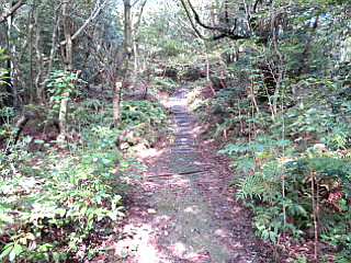 | 常宮神社駐車場 | 民家の間から見える一の院展望所 | 湯林の中の階段の道が続く |