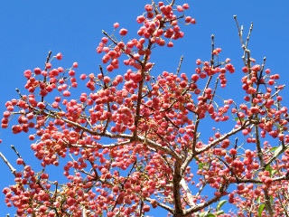 | 山行記 | ●この日は、前日宿泊した熊本のホテルから朝一番のフェリーで島原に渡り雲仙普賢岳を目指す。未明に目が覚めてスマホでフェリーの状況を確認していたら、ネット予約で割引があることを知り、慌てて締め切り直前に予約を完了することができた。 ●朝一番でまだ空いている熊本フェリーは豪華な超高速船で、約30分で島原に着くという。フェリーからは雲仙の平成新山がしだいに大きく見えてきて、おのずと期待は高まってくる。 ●島原港に着き、レンタカーに乗って上陸するとそのまま雲仙普賢岳の登山口である仁田峠を目指す。仁田峠へ至る道は舗装された上下2車線の快適な舗装道だが、ヘアピンカーブも多くかなりの傾斜を登っていく。 ●仁田峠には広い駐車場があるが、平日だというのにかなり込み合っており、何とか車を停めると歩き始める。駐車場からロープウエイの駅を目指すが、この時期でもミヤマキリシマがぽつぽつと咲いており、ロープウエイがかかる妙見岳の山肌の紅葉もいい感じだ。 ●登山道はロープウエイ駅の右手奥から始まる。しばらく緩やかな広い登山道を気持ちよく進んでいくと、ようやく紅葉してきた木々が朝の陽を透過してより美しく見える。 ●平坦な道はしばらく続くが、あざみ谷を過ぎると徐々に登り始め、その後急坂をジグザグに登ると、国見岳と普賢岳との分岐になる紅葉茶屋に着く。紅葉茶屋では多くの人が休憩をしていた。 ●紅葉茶屋からは普賢岳に向かって急な登山道を登る。この辺りの紅葉は丁度いい感じで、青空と陽光が紅葉を引き立てていた。しばらく登っていくと、霧氷沢との分岐が現れるが、そこからは一登りで普賢岳山頂に到着する。 ●ここまで開けなかった視界が一気に開け、そそり立つ平成新山の火山ならではの荒々しい姿が目前に迫る。平成新山は普賢岳と比べると100m以上標高が高いが、今だ火山活動が活発なため立ち入り禁止になっている。 ●普賢岳には一等三角点が置かれ平成新山などの絶好の展望地になっている。周囲りの山肌は紅葉真っ盛りで、その先には島原などの市街地や有明海などを見ることができる。 ●しばらく展望と紅葉を楽しんだ後、一旦紅葉茶屋まで戻り、今度は国見岳方面へ向かう。国見岳への道は意外に急なのだがそれ以上に国見岳が高く見え、これを登るのかと心配になってしまう。 ●それでも、振り返れば振り返れば普賢岳山腹の紅葉が半逆光で一層引き立って見える。やがて国見岳と妙見岳との分岐となる国見分かれに着く。国見分かれから少し緩やかに下った後、国見岳の急な登りが始まる。 ●国見岳への登りは、見た目通り急で、鎖やロープが設置された箇所もあり。そして何よりも道が狭く退避場所が無いので、下りてくる登山者とのすれ違いが大変だ。 ●短いが急な道を登り切ると国見岳の山頂に着く。国見岳山頂は狭いが展望は良好で、これから向かう妙見岳や海も見えるが、その中でも紅葉の綺麗な普賢岳と灰色の平成新山との対比が面白かった。 ●国見岳からすれ違いに難渋しながら下り、国見分かれまで戻ると、今度は妙見岳を目指す。国見分かれから少し緩やかに下り緩やかに登り返すのだが、山頂を通り越してしまうのではないかと思う頃妙見神社の前に着く。 ●妙見岳は妙見神社から戻る方向に登り返すのだが、山頂へ続く道は、残念ながら土砂崩れのため通行止めとなっていた。妙見神社はロープウエイで登ってくる観光客で賑わっているので、そこそこにしてロープウエイ駅の方へ下り始める。 ●ロープウエイ妙見岳駅の途中で歩いて仁田峠へ向かう道が分岐する。歩いて下っても30分とのことだが、今回はロープウエイに乗ってみたいのと膝のことを考えてロープウエイで下ることにした。 ●仁田峠は平日とは思えない程賑わっており、やはりここは有名な観光地だということをあらためて感じた。仁田峠からは、途中で昼食を摂り小浜温泉で汗を流した後、この日の宿泊地である長崎を目指した。 |