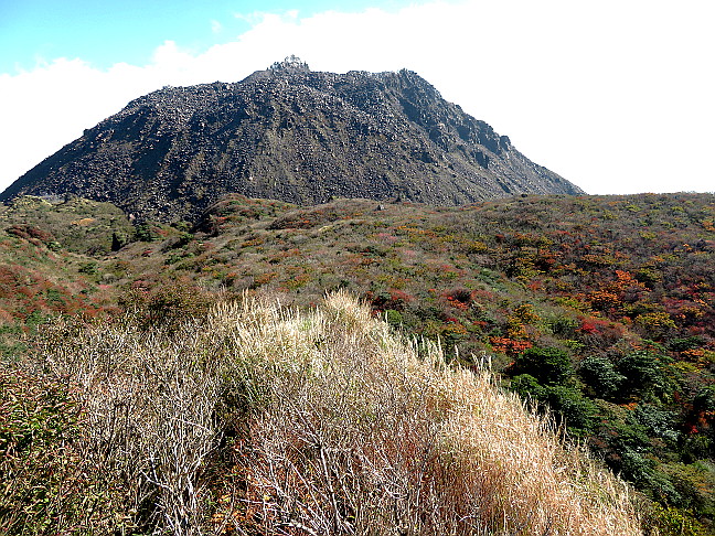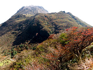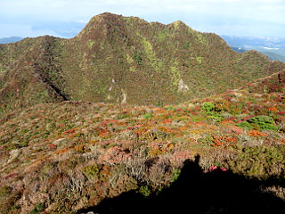 | いまだに噴煙を上げる平成新山を望む紅葉が真っ盛りの長崎県最高峰 | ||