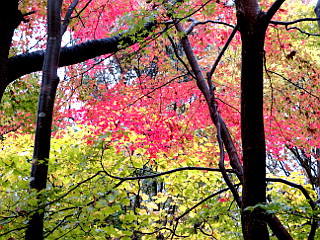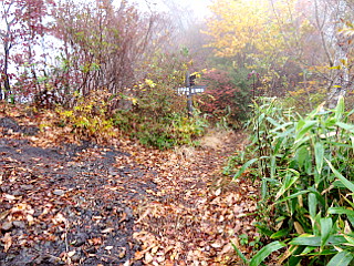 | ガスの中の紅葉もいい感じだ | グリーンライン分岐 | 山頂手前のピーク |