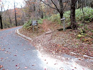 | 山行記 | ●またまた平日のまとまった連休をもらったので、今目指している都道府県最高峰の中で、唯一東日本で残っていた茨城県最高峰の八溝山へ行くことにした。今回は日曜日に出発したので、高速道路の割引があるのがありがたい。 ●豊川を昼頃出たが、午後6時頃に、この日お世話になる道の駅奥久慈だいごに到着することができた。翌朝、八溝山の登山口となる日輪寺の駐車場へ向かう。天気予報は曇りということだが、朝から雲が厚くいつ雨が降り出しても不思議でない感じだ。 ●駐車場に車を停めると、日輪寺を参り、右手に続く登山道を進むが、外に人気も無く暗くて気味が悪い。登山道自体はコンクリート舗装されており、広く緩やかで歩きやすい。 ●少し歩くと先程車で通った釈迦岳の少し先に出るが、登山道はそれを横切りさらに緩やかに登っていく。コンクリート舗装はそこまでで、以降は落ち葉の積もる土の道に変わる。 ●道は車道のすぐ上に続き、金性水分岐を過ぎるとすぐに銀性水分岐が現れる。銀性水は登山道から外れるが、70mということなので行ってみることにした。緩やかに下っていくと銀性水が現れるが、水は涸れていた。 ●登山道に戻り少し進むと、再び車道と出会うが、すぐ先には八溝神社の入口があり、階段の下には白馬の像があって目を引く。八溝神社は後で寄ることにして、山頂を目指して車道を登っていき、途中高いと思われる方へ登ると八溝山の山頂に到着する。 ●山頂には一等三角点があり、傍らにはお城の形をした展望台があるが、雲が厚く展望も無いのでそれに登るのは止めることにした。本来なら展望台から四方の山々を眺められるとのことだがこの天気では仕方がない。 ●八溝嶺神社でお参りをして下山にかかる。先程の金性水分岐からやや急な道を下ると車道を横断し、木の階段のある急な坂を下ると龍毛水方面への分岐が現れるが、そこを龍毛水方面へ行けば日輪寺まで行くことができるということなのでそちらへ進む。 ●平坦な道を進むとすぐに龍毛水が現れるが、ここはある程度の水量が流れていた。さらに概ね平坦な道が続くが、薄暗い樹林の中の紅葉した木々の葉が明かりのようにいいアクセントになっていて美しい。 ●いつの間にか降り出した雨はしだいに本降りとなり、次に予定していた久慈男体山はどうしようかと迷ったが、とりあえず登山口まで行ってから考えることにして、日輪寺駐車場を後にして紅葉の山肌を楽しみながら久慈男体山の登山口へ向かった。 |