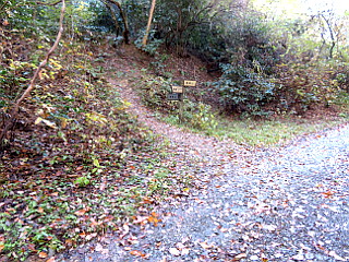 | 向陽台駐車場 | 旧道の車止めのゲートを越えて進む | 旧道沿いの紅葉はいい感じ |