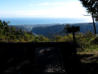 | 山行記 | ●堅破山からこの山の登山口である向陽台駐車場へ向かう。駐車場は本山トンネル手前の駐車スペースで、何の案内も無かったので、本当にここでいいのかと半信半疑だったが、倒れていた看板を発見してここが登山口であることがわかった。 ●駐車場からは、ガードレールの隙間から旧道へ入り、車止めのゲートを越えて登っていくのだが、それはトンネルができる前の旧道なので、舗装されていて歩きやすい。 ●紅葉やノコンギクなど咲き残りの秋の花を見ながら、濡れて滑りやすい舗装道を緩やかに登っていくと、向陽台という旧道のトンネル手前の広場に出る。 ●ここで道は神峰山方面と高鈴山方面に岐れるので、まず最初は神峰山方面へ向かう。稜線に付けられた道は、落ち葉が降り積もる日だまりの快適な道だ。途中きららの里分岐を分け、かみね公園への分岐から神峰山への登りが始まる。 ●もう一度かみね公園への分岐を経ると気象観測施設と神峰神社のある神峰山山頂に到着だ。山頂からは太平洋が見渡せ、樹間にはこれから向かう、鉄塔などが林立する高鈴山なども見ることができた。 ●神峰山で若干休憩をした後、高鈴山へ向かう。向陽台まで来た道を戻り、案内に従って引き続き快適な稜線の道を進む。ここが御岩山山頂かと間違えるような小ピークを越えると麓の御岩神社への分岐が現れ、この辺りから登山者も多くなってくる。 ●後で知ったことだが、御岩神社から御岩山にかけては、日本屈指のパワースポットらしく、平日にもかかわらず、いつも平日ではあまり見かけない若い層も含めて山頂付近は人で溢れていた。 ●そんなことも知らず、山頂を探してみるがよくわからず、展望のいい広場が山頂だと思って、先へ進むことにした。広場から岩の間を進むと、高鈴山への分岐が現れたので、そこから高鈴山方面へ行くことにした。 ●稜線の道は緩やかに続き、周囲の紅葉も美しく快適だ。やがて神峰山からも見えた大きな塔の前に着くが、高鈴山の山頂はそのすぐ右手だ。山頂広場には木で作られた展望所があり、立派な山頂表示もある。 ●高鈴山山頂にも登山客が数組訪れていて、中には足繁く通う常連もいるようで、この山の人気の高さがうかがえる。天気も良く気持ちのいい山頂はいつまでも過ごしたいところだが、きりがないので来た道を戻ることにして、来た道を戻った。 ●。 |