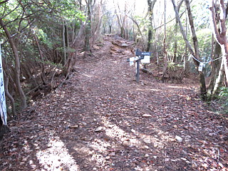 | 峰山山頂に祀られる神峰神社 | 向陽台から高鈴山方面(右)へ向かう | 御岩神社分岐 |