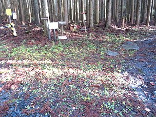 | 駐車場にある案内板 | 堅破山登山口 | 二の鳥居から来る道と合流 |