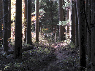 | 雷を受けそれを包み込むように成長した雷杉 | 弁天池と東屋 | 明神鳥居と仁王門 |