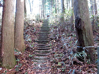 | 黒前神社へ続く長い石段 | 黒前神社 | 堅破山山頂 |