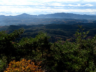| 堅破山山頂にある展望台 | 展望台から見る神峰山と高鈴山 | 展望台から見る筑波山と加波山 |