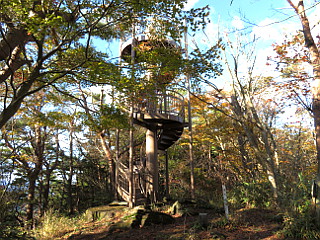 | 山行記 | ●前日とは打って変わって晴れの予報のこの日、前夜、前々夜とお世話になった道の駅奥久慈だいごを後にして、この日最初に登る堅破山(たつわれさん)の登山口を目指す。 ●登山口駐車場は、山頂に祀られている黒前神社の二の鳥居の近くにあり、広いので何台も車を停めることができる。紅葉の美しい大きなモミジの木のある駐車場には既に先行の人の車が停められていた。 ●早速支度を済ませて案内に従い林内に入ると、すぐに二の鳥居から来る登山道と合流し、薄暗い樹林の中、粘土質の黒土に所々岩が露出した滑りやすい登山道が始まる。 ●道沿いには、願い事をするときに廻すとという「後生車」から始まり、「不動石」、「手形石」、「烏帽子石」など、云われの書かれた大石などが次々と現れ退屈させない。ヒノキの樹間に見える紅葉もいい感じだ。 ●さらに登っていくと明神鳥居と仁王門が現れ、そこから始まる急な階段を登れば山頂までのショートカットとなることは一見してわかるが、今回はこの山自慢の奇石「太刀割石」が見たいのでそのまま進む。 ●道が主尾根と合流すると、いよいよお目当ての「太刀割石」が現れる。球形の大岩を綺麗に真っ二つに割ったような不思議な姿はまさにこの山の一番の見どころだ。 ●不思議な石をしばらく見た後、山頂を目指す。ほぼ平坦な登山道を進むと釈迦堂や「甲石」、「船石」などの奇石のある広場に着く。黒前神社へはそこから始まる急な石段を登らなければならない。 ●階段を登り切ると黒前神社があるのでお参りをした後、右に続く緩やかな道を登れば展望台のある堅破山山頂に到着する。山頂には立派な展望台が建てられている。 ●展望台のらせん階段を登ると、これから向かう神峰山、高鈴山や明日登る予定の加波山、百名山の筑波山などが見えたが、展望案内にある日光連山は雲がかかって見えず、富士山も見ることはできなかった。 ●帰路は、奇岩や名所と紅葉の樹々を楽しみながら来た道を戻った。下山後は本日二本目の神峰山、高鈴山に登るため、登山口の向陽台駐車場へ向かった。 |