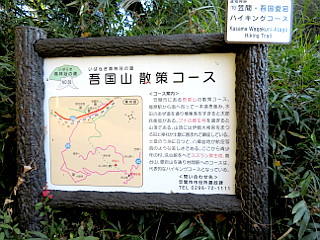 | 行程 | 道祖神峠駐車スペース(7:58)・・・青少年教育施設の広場(8:06)・・・舗装道出合(8:11)・・・吾国山(8:29-35)・・・舗装道出合(8:52)・・・青少年教育施設の広場(8:56)・・・道祖神峠駐車スペース(9:03) | |