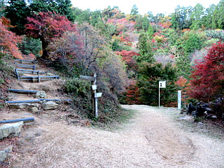 | ドウダン展望コースとトンネルコースの分岐 | 展望の丘の山肌の紅葉 | 宮路山山頂 |