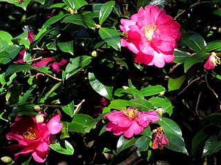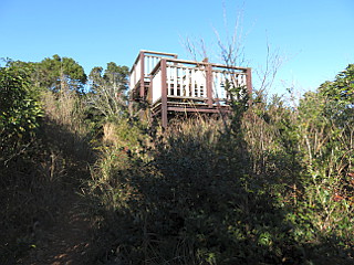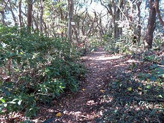 | 山行記 | ●この日は全国的に晴れるという予報が出ていたので、富士山の展望を期待して出かけることにした。この日は日曜日なので、通勤ラッシュにも巻き込まれずに、スムーズに滝頭山公園駐車場まで行くことができた。 ●既に多くの車が停まっている駐車場を後にして、この日の登山口である衣笠自然歩道入口まで、コミニティーバスが行き交う舗装道の歩道を歩いていくと、ツワブキやヤツデ、シロノセンダングサなどが路傍に咲き、海の近い暖地であることを実感する。 ●衣笠自然歩道入口から大きくジグザグを切って、小衣笠から林道終点の広場に出ると、松尾岩コースの急登を登る。松尾岩や西の覗きを過ぎ、朽ちた木の急な階段を登っていくと、殿様新道からのコースと合流し、すぐに衣笠山山頂に着く。 ●山頂の展望台に上がれば、富士山を始め南アルプスや御岳などの山々、三河湾や反対側の太平洋、田原、豊橋市街などの360度の展望が得られた。 ●しばらく山頂展望台で展望を楽しんだ後、桟敷岩新道を下る。桟敷岩からは、大山や雨乞山などの渥美半島西部の山々や三河湾、三河湾に浮かぶ島々、知多半島や伊勢方面まで見渡すことができた。 ●直登コースと合流し、広く明るい防火帯を歩いていくと、今が盛りのツルソバやツバキの花、咲き残りのユウガギク、スズカアザミ、そしてフユイチゴやカクレミノの実などがよく目立っていた。 ●仁崎峠からは急坂を登って滝頭山へ向かう、滝頭山山頂からも、木々が伸びてなかなか見づらくなってきたが、富士山や南アルプス、衣笠山などを見ることができた。 ●滝頭山山頂からは、長興寺自然歩道を歩き、途中で荒れた林道へ下って三ツ俣へ向かう。この日は富士山がよく見えるので、藤尾山へも寄っていくことにする。三ツ俣から一旦下り、登り返せば藤尾山山頂だ。 ●藤尾山山頂からは、正面に逆光でキラキラ光る太平洋が望め、富士山や南アルプスもよく見ることができた。風も無く日が当たってポカポカの藤尾山山頂でも少し展望を楽しんだ後、三ツ俣まで戻り、迷子尾根ノ頭を越えて不動岳へ進む。 ●不動岳山頂に着くと、ここで合流する広い防火帯を歩いて赤松山山頂を越え、扇原からクチナシの道を下り、車を置いた滝頭公園駐車場へ戻った。日曜日なので、滝頭公園駐車場は、スポーツをする人達の車が溢れていた。 |