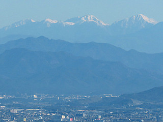 | 衣笠山山頂 | 衣笠山山頂から見る荒川岳、赤石岳、聖岳 | 衣笠山山頂から見る恵那山 |