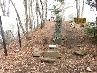 | 山行記 | ●花も咲き終るこの時期の山の楽しみは、富士山などの展望だ。空気が澄むこの時期は、富士山などを見られる確率が高くなるからだ。この日も、山の仲間と富士山の展望が期待できる道志の山を目指すことになった。 ●今回の駐車場は、道志と都留を結ぶ道坂トンネルの都留市側にあるバス停のところの広場を利用する。豊川を6時に出て、駐車場に着いたのは9時過ぎだ。駐車場はほぼ満杯だったが、かろうじて空いていた1台分のスペースに車を置くことができた。 ●登山口は、駐車場の一角にあり、道路の法面に沿って登っていく。やや急な登りはいったん落ち着き、再び登っていくと道坂峠に着くが、そこは御正体山方面との分岐になっている。 ●当然ここは今倉山方面に進むが、以降今倉山山頂までは急登が続く。それでも、ガスに包まれた落葉した木々は神秘的で、深く積もった落ち葉もいい感じだ。何とかその急登を登り終えると今倉山山頂だ。 ●この山は、山梨百名山に数えられる頂だが、木々に囲まれて展望はよくない。往きの新東名高速からは富士山が見えたのだが、しだいに雲が厚くなり、ここにきて富士山どころか、周りの山肌すら見ることができなくなってしまった。 ●少し休憩をした後、二十六夜山方面へ向かう。今倉山山頂から一旦下り、御座入山と呼ばれる今倉山の西峰を越えると西ヶ原と呼ばれる小広場に出るが、ここからも道坂トンネル方面へ下ることができる。 ●西ヶ原から急な坂を登り、いくつかの急なアップダウンを繰り返すと、岩の多い登山道となり、松山、別名赤岩という展望の開ける岩のピークに着く。この日は残念ながら一面ガスに覆われ展望は利かないが、設置されている展望案内版を見ると、晴れていれば富士山をはじめとする名だたる山々を見ることができるようだ。 ●赤岩からは、岩の多い急なアップダウンが続くが、途中、中ノ沢ノ頭からは、急なアップダウンを繰り返しながらも徐々に高度を下げ、やがて舗装道が見えてくると、階段で急降下しその舗装道に下りる。 ●舗装道出合からその舗装道を少し登ると峠に着くが、そこかが二十六夜山への登り口になっている。入り口には、先程の舗装道出合にあったものと同じ形の道標が立てられているが、この道標には案内の文字が何も書かれていないのが不思議な感じだ。 ●二十六夜山の登り口から階段で主尾根に出ると、緩やかな登りが始まるが、しだいに傾斜も急になり、いくつか山頂と間違えそうなピークを越えると二十六夜山山頂の広場に到着する。 ●二十六夜山山頂も、一部木々が刈払われ展望が利きそうなところだが、やはりこのガスでは望むべくもない。また、山頂には三角点や二十六夜山の山名の由来の書かれた看板などもある。 ●二十六夜山山頂でも少し休憩をした後、来た道を戻り、舗装道を歩いて道坂トンネルまで戻るだけなのだが、通行止めのはずの舗装道は大型ダンプが頻繁に行き来しており、ダンプが来る度に道の隅に避けるのだが、舗装道の隅にはノイバラの棘がきつく大変だった。 ●舗装道を1時間以上かけて歩いて駐車場に戻ると、朝あった車は1台も無くなっていた。帰路、しだいにガスが取れはじめ、山中湖の辺りでは富士山の姿が見えるようになったので、三国峠下の展望所に寄った後、富士山を見ながら新東名を走り豊川へ戻った。 |