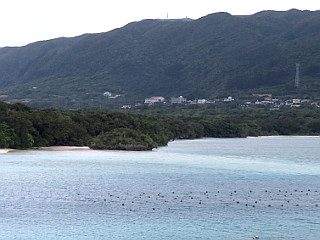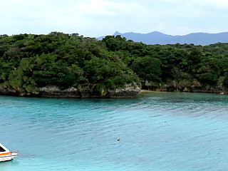 | 川平湾のグラスボート | 川平湾から見える於茂登岳 | 川平湾からは野底岳も見える |