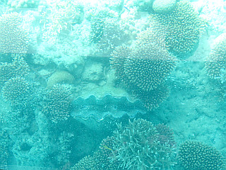 | グラスボートから見る魚たち | グラスボートから見るシャコ貝やサンゴ群 | 立ち寄った泡盛の蔵元 |