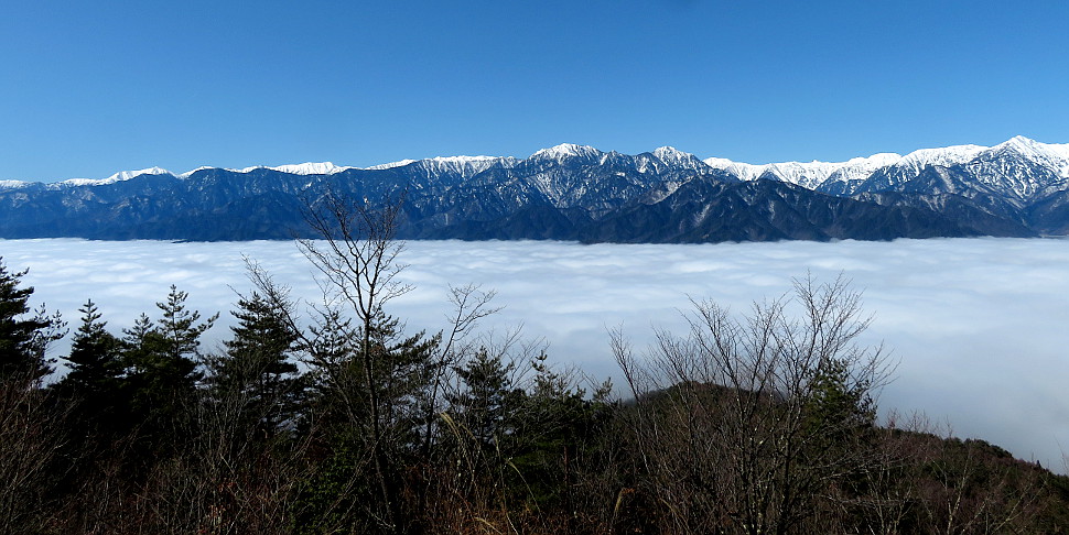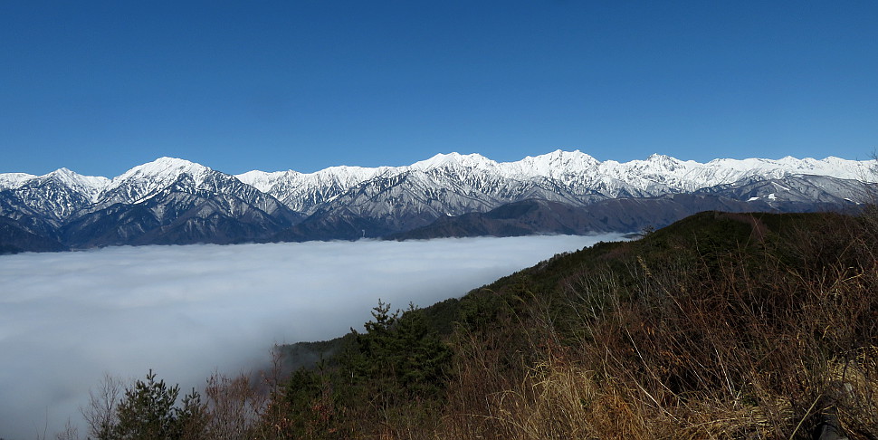 | 雲海に浮かぶ鉢伏山と南アルプス(甲斐駒ヶ岳、北岳、仙丈ヶ岳、塩見岳、悪沢岳、赤石岳、聖岳など) | ||