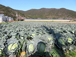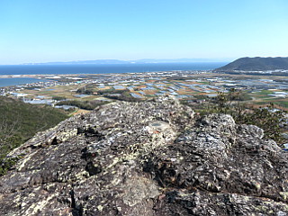 | キャベツ畑と雨乞山、物見山 | 伊河津揚水機場横の雨乞山登山口 | 三角点から三河湾を望む |