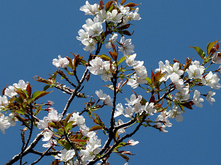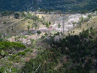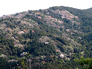 | 世界の桜の園から見る吉祥山 | 桜の咲く比丘尼城址 | 山肌のヤマザクラが綺麗だ |