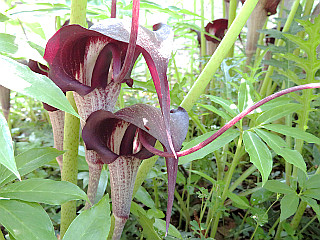 | ヒトリシズカ | ウラシマソウ | このようなウラシマソウの群落が各所にある |