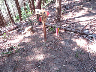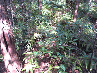 | コシダの茂る道無き急斜面を直登する | ようやく市境稜線に出た | 左から上ってくる巡礼の道に合流 |
