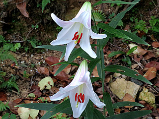 | 山行記 | ●先日、比丘尼を訪れた時ササユリが咲き始めていたのを見たので、ここでも咲いているだろうと出かけることにした。愛知県の緊急事態宣言も解除され、少し経済も動き出したので、通勤時間の混雑を避けようと少し早く出ることにした。 ●ところが、思っていたよりも混雑に巻き込まれることも無く滝頭公園駐車場まで行くことができた。駐車場入り口には相変わらず新型コロナウイルスの貼紙があったが、以前は通路の真ん中にあったのが、心なしか隅に寄せられていた。 ●駐車場からは、いつものように藤七原湿地まで歩くが、まだ時間が速いので日陰が多くて気持ちがいい。藤七原湿地の入口から湿地を登っていくと、ノハナショウブがぽつぽつと咲いていて、カキランも一株だけ咲いていた。 ●藤七原湿地から野草衣笠団地に咲くユキノシタを見て戦国燧石取場を通って未舗装の林道に出ると、それを少し歩いて殿様新道入口から衣笠山へ取り付く。最初はなだらかな登りも徐々に急になり、山頂直下で松尾岩コースと合流して衣笠山山頂に至る。 ●展望台に登るが、この日は残念ながら富士山や南アルプスなど遠くの山は見ることができなかった。展望台で少し休憩した後、桟敷岩コースを下る。 ●桟敷岩コースは最後に直登コースと合流し、以降は防火帯の広く明るい道を進む。道はすぐにジョギングコースと合流するが、いつもは花がいっぱい咲くこの道沿いにはこれといった花も無く、期待したササユリも見ることはできなかった。 ●仁崎峠からはいつもの急斜面を登って滝頭山山頂を目指す。滝頭山山頂では、周りの樹々が伸びてしまい、富士山どころか隣の衣笠山や蔵王山も見ることができなくなってしまった。 ●滝頭山山頂で少し休憩をした後、長興寺自然歩道を歩いて中西山山頂を越えた後、藤尾山方面へ下る。西の覗きでも霞んでいて同じ渥美半島の大山や雨乞山すら見ることができない。 ●荒れた林道を横断して不動岳方面へ山道を登る。ササユリはまだ蕾ばかりで、アキノタムラソウは咲き始めていた。三ツ俣、迷子尾根の頭を越え不動岳山頂からは再び広い防火帯を歩く。この辺りのササユリは咲く直前のものばかりで、咲いているものは見られなかった。 ●赤松山山頂を越えて展望台のある扇原からクチナシの道を下る。下るに連れ咲いているササユリが見られ始める。その外には、アキノタムラソウやシソバタツナミ、キランソウなどを見ることができた。 ●クチナシの道から車を置いた滝頭公園駐車場まで戻ったが。平日だからなのか使用禁止だからなのか、滝頭運動公園でスポーツをする人は見なかった。 |