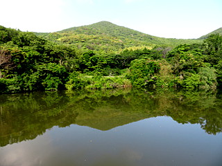 | 滝頭公園入口と滝頭山 | 衣笠山の端正な姿を映す溜池 | 藤七原湿地入口 |