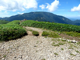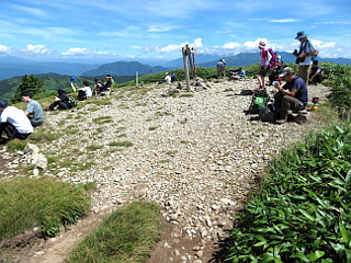 | 山行記 | ●今日は「山の日」。愛知県に緊急事態宣言が出されたものの、結局「GO-TO」なのか「自粛」なのかよくわからず。愛知県知事の説明も東海三県は別のようなニュアンスだったので、岐阜県ぐらいならいいだろうと思って出かけることにした。 ●富士見台は2度程登ったことがあるが、岐阜県側の強清水から登るのは初めてだ。豊川を朝6時に出て強清水の駐車スペースに着いたのは8時頃だったが、既に2台の車が停まっていた。 ●さすがはお盆の連休、神坂峠まで続く舗装道を上っていく車が多い。こちらも支度を済ますと登山口から山道を登り始める。最初は樹林帯の中を緩やかに登っていくが、標高が1000mを超えているので暑さは感じない。 ●道は、蛇行する舗装道に出ては、それを少し歩いて次の入り口から山道に入るというパターンが繰り返される。狭い舗装道を歩くときは、頻繁に車が通るので気を付けなくてはならない。 ●山道の入り口の案内の無いところがあり、案内を探して進んでいくと大檜駐車場に出た。そのまま舗装道を歩いて次の入り口から山道に戻ると、傾斜は次第に増してきて、まっすぐだった山道もジグザグに変わる。 ●やがて、駐車している車両が見えてくると神坂峠と彫られた碑のある神坂峠遺跡に着く。神坂峠遺跡からはいくつかのピークを左に巻いて付けられた道を進む。しばらく歩いていくと樹林帯を抜け、富士見台に至る伸びやかな笹原の山肌が見えてくる。 ●意外に足元の悪い笹の道を進むと萬岳荘から上がってくる道と合流する三差路だ。ここまで来ると一気に人が増える。お盆中の三連休で天気もいいので、家族連れが各所で大勢集まって休憩をしている。 ●それらの人達に交じって、開けた緩やかな道を富士見台へ向かう。緩やかな道は遮るものがないので、目指す富士見台が終始見えている。途中神坂小屋や神坂山への分岐を見送り、さらに緩な坂道を登ると、大勢が休憩している富士見台の山頂に到着する。 ●富士見台山頂は大きく開けていて、360度の展望が広がる。見えるはずの御岳や中央アルプス、南アルプスなどは、上部が雲がかかって見ることができなかったが、恵那山や神坂山、南沢山などの周辺の山々や中津川市街などはよく見ることができた。 ●富士見台山頂は、開けている分日影が無いが、標高も高く風も適度に吹いていてそれほど暑さは感じないので、しばらく展望などを楽しんだ後、次は、神坂山へ向かう。 ●一旦先程の分岐まで戻り、人が溢れるメインの登山道から外れて神坂山方面へ進む。少し上った後下り、その後小さく上り下りすると神坂山と萬岳荘との分岐に出る。後は神坂山への登りを登り切れば狭い神坂山山頂に着く。 ●神坂山山頂には三角点が設置されており、「岩田石」と刻まれた大きな石がある。展望は、疎らな木々の間から富士見台方面などを見ることができる。 ●神坂山で小休止した後、先程の分岐から萬岳荘方面へ下る。笹の斜面から樹林帯に入ると、程無く萬岳荘に到着する。萬岳荘に着くと「マスク着用」の張り紙があり、少しの間忘れていた現実に引き戻される。 ●意外に人の少ない萬岳荘からは、舗装道を歩いて神坂峠まで行き、そこから恵那山方面へ登り返す。これまで歩いてきた道とは打って変わって急な道は、笹原と樹林帯が交互に現れ、やがて展望のいい千両山山頂に着く。 ●千両山山頂からは、その先に聳える恵那山、振り返れば今歩いて来た富士見台や神坂山などを見ることができる。周辺では、ツルリンドウがよく咲き、ホツツジやリンドウなども咲き初めていた。 ●千両山山頂から大きく下り、アップダウンの激しい尾根道を進んでいくと鳥越峠に着く。かつて、神坂峠から恵那山をめざしたとき歩いた道だが、この道を歩いて、さらに遠くの恵那山まで行ったと思うと感慨深い。 ●薄暗い樹林の中の鳥越峠から、恵那山へ続くメインの登山道を外れて強清水方面への急な坂道を下る。道は朽ちた木の橋や足を踏み外しそうな不安定な山腹道などがあり気が抜けない。 ●それでも何とか追分登山口で舗装道に出ると、後は来た道をひたすら戻った。1000m以上ある強清水は冷たい湧水もあり涼しかったのだが、帰宅後ニュースを見ると、この日中津川は35度以上の猛暑日だったようだ。 |