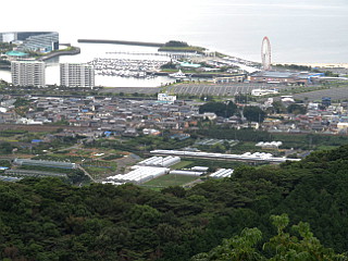 | 砥神山東峰山頂 | 砥神山西峰山頂 | 西峰山頂から見るラグーナ蒲郡と新幹線 |