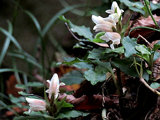 | 山行記 | ●アケボノシュスランを見るために、ここ数年ここを訪れているが、なかなか最盛期を予測するのが難しい。昨年訪れたときは少し早かったので、今年は、今年の秋の花の遅れを考慮してこの日に訪れることにした。 ●登山口のくらがり渓谷までは、豊川からだとそれ程時間はかからないのだが、ずいぶん奥深くへ来た感じがする。朝8時頃に駐車場に到着したが、いつも車を停める第1駐車場の開門は朝9時らしく、開いていなかったので第2駐車場に車を停めた。 ●くらがり渓谷と書かれたアーチを潜ってくらがり渓谷の林道を緩やかに登っていく。遊歩道の入り口にある管理事務所には植林の伐採作業のため平日は通行止めと書かれていたが、通行止めは車だけだろうと勝手に思いそのまま進む。 ●このところ朝晩は冷え込むようになり、Tシャツだけでは肌寒かったが、登っていれば熱くなるだろうと、上に着る山シャツはリュックの中に入れたままだ。 ●くらがり渓谷から山頂までは7km余り、表コースと比べて急坂は少ないが距離はある。沢沿いの暗い樹林の中の林道を緩やかに登っていく、途中、いくつかのキャンプ場と「猿飛の岩」、「もみじ橋」、「おきな淵」などの見所満載だ。道沿いには、マツカゼソウやホトトギス、キツネノマゴなどの花が咲く。 ●一ぜんめし休憩所を過ぎると道は急な登りに代わる。すぐ上でまぼろしの滝入口を経て、鹿鳴橋のところで新しい2か所の砂防堰堤を見る。その後、いくつかの橋を渡ってさらに進むと突然皆伐地に出る。 ●明るい皆伐地では、アケボノソウやフジウツギ、アキノノゲシなど、これまで見なかったが咲いており、それらを楽しみながら進めば馬の背平に着く。ここで道は急な尾根道とそのまま林道を進む道とに分かれるので、ここは花期待で明るい林道を進む。 ●明るい皆伐地の林道を登っていくと、オトコエシやヤクシソウ、ヒヨドリバナ、オトギリソウなどが次々と現れ楽しいが、林道沿いにはネットが張られ、近付くことができないので写真を撮るのが大変だ。 ●林道は、皆伐地から樹林帯に入り斜度を増してくると、本宮山山頂一角の広場に出る。広場には広い駐車場があり、車やバイクで訪れた人たちが大勢居た。広場から本宮山スカイラインを挟んで盛り上がる鉄塔だらけのピークが本宮山山頂だ。 ●車に気を付けながら本宮山スカイラインを渡り、傷みの激しい舗装された急な坂を登りきると、一等三角点のある本宮山山頂に到着する。さすがに、標高800mの山頂は、風がやや強く寒いくらいなので、ここで初めてリュックから山シャツを引っ張り出して羽織った。自慢の展望はというと、曇りがちのこの天気では望むべくもない。 ●少し休憩を取った後、下山にかかる。下山は来た道を戻った。お目当てのアケボノシュスランは、昨年見た群生地が増水などで流されたのか見つけることができなかったが、昨年も確認した撮影できない場所での群生と、数箇所で数株ずつ咲いているのを確認することができた。 |