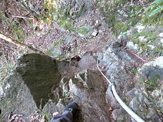 | 見晴し岩から見る山並み | 大天井岳まで10分の馬の背 | ほぼ垂直のクサリ場が続く |