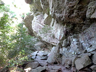 | 展望岩から見る険しい大天井岳 | ロープの架けられた急な岩場 | 大岩が覆い被さる出雲岩 |
