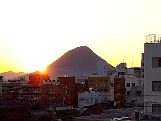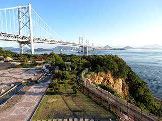| 瀬戸大橋を渡って四国へ | ホテルの窓から見る讃岐富士と御来光 | キャンプ場からは舗装道を登る |