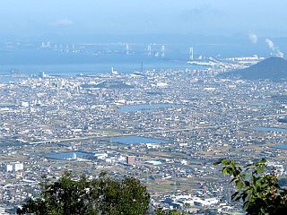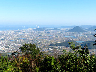 | 車止と大麻山登山口 | 大麻山展望台 | 大麻山展望台から見る丸亀市街方面 |
