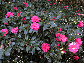 | 狂い咲きのモチツツジ | 植栽の八重のツバキ | ヤブコウジ |