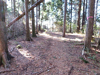 | 山行記 | ●この日は天気がいいというので、富士山が見たくなって弓張山を訪れることにした。今回は、前回見つけられなかった三遠南信道の渋川ICから浅間神社鳥居までの道を探そうと、豊川ICから高速に乗って渋川ICで下りてみた。 ●高速を下りるといきなり山間の集落の中の細い道に出るので、予め調べておいた道を辿って登山口の浅間神社鳥居を目指す。舗装されていた道は、分岐を繰り返しながら段々荒れた未舗装の道に代わっていく。 ●途中、浅間山への登り口を見つけたが、今回は予定の浅間神社鳥居まで行き、鳥居前の広場に車を停めて歩き始める。鳥居を潜り急な坂道を登っていくとしだいに傾斜は緩くなり、右から上がって来る道と合流すると、程無く浅間山山頂に着く。 ●浅間山山頂は樹林に囲まれた小広場で、展望は無いが浅間神社の立派な祠がある。浅間山山頂からは、少し下り、以降は弓張山脈の樹林帯の中の薄暗い広く平坦な県境の稜線道を歩いていく。 ●しばらく行くと道は緩やかな上り坂に代わり、しだいに斜度を増していくと、岩の露出した箇所があり、そこを過ぎると弓張山山頂に着く。弓張山山頂も浅間山山頂と同じく樹林に囲まれていて展望は無い。 ●弓張山山頂からはやや急な下りが始まる。道は林道を歩くようになるが、途中で左の山道に入り、最初は低木の枝が道に張り出し邪魔だが、すぐに歩きやすい道に代わり、やがて舗装された林道に出る。 ●少しその林道を歩くのだが、東側は広く伐採され展望が広がっている。南アルプスや富士山、浜松市街、遠州灘まで見渡すことができる。しかし、富士山が思っていたよりも小さかったのは少々期待外れだった。 ●暫し展望を楽しんだ後、再びその先の山道に入るが、案内は無いし、仮に舗装道をそのまま進んでだとしても同じところに出るので心配はない。 ●その山道をしばらく上り、再び下ると弓張山と城山の鞍部に出る。そこは、いろいろな道が集まる6差路になっているが、ここはまっすぐ続く山道を登る。 ●山道は舗装道を見下ろしながら登っていくが、一旦なだらかになり、再び始まる急坂を登切ると未舗装の林道に出る。未舗装の林道を左に進むと、すぐに舗装道に出るので、それを登っていくと目の前にこの山のシンボルである2基の電波塔が見えてくる。電波塔の間の木々の中に城山山頂である三角点が設置されている。 ●城山山頂で少し休憩を取った後下山にかかるが、帰りは舗装道を歩いて下る。途中、分岐があるので左へ続く車両通行禁止の舗装道へ入る。道は一部未舗装で、大きく回って先程の弓張山と城山の鞍部に着く。 ●後は、舗装された林道をそのまま歩いていく。先程の伐採地以外は展望の無い単調な舗装道歩きで、そろそろ嫌になってくる頃、再び道が分岐するが、ここは案内に従って左に続く未舗装の林道に入る。 ●今まで歩いてきた林道と比べて一層暗く意外にアップダウンもある未舗装の林道をしばらく歩いていくと、やがて車を置いた浅間神社鳥居に到着する。 ●本当ならここで山行は終わりなのだが、この日はまだ体力的にも余裕があったので、往きに見た登山口が気になっていたので、それを確認してみることにして、林道をそのまま進む。 ●ところが、林道は意外に大きく下り、その登山口から浅間山もそんなに時間はかからないだろうと思っていたのは間違いだったようだ。鳥居から700〜800mのところでようやく登山口を見つけると、そこから登り始めた。 ●道は不思議なぐらい一定の斜度で上がっていくので、体の負担はそれ程でも無いが、山頂とは大分離れた分思っていたよりも歩く時間は長く感じた。しばらく登り続け、少し傾斜が増してくると、ようやく浅間神社鳥居から上ってくる道と合流する。 ●合流点からは一登りで浅間山山頂に着く。山頂で少し休んでから鳥居まで下り、帰りはいろいろと道に迷いながら高速を使わずに自宅まで戻った。 |