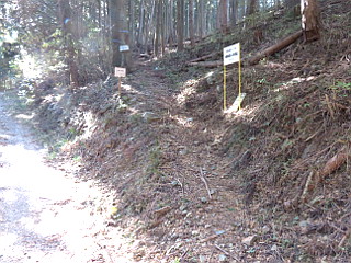 | 期待した富士山は思ったよりも小さかった | 大きく開けた伐採地 | 浅間山と城山との鞍部の6差路 |