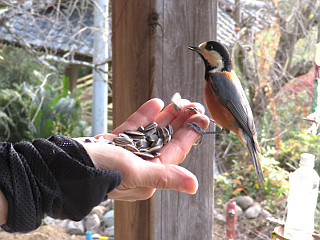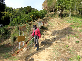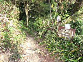 | ヤマガラなどの小鳥が人の手から餌を食べる | 霊山寺の右手から再び登山道に入る | 番号となぞなぞの看板が山頂まで15箇所 |