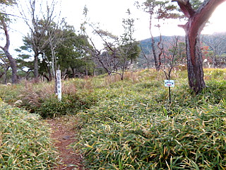 | おすすめの小径出合付近はまだササが深い | 西登山口 | ソヨゴ |