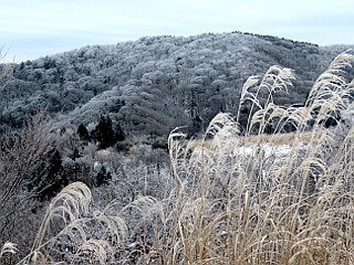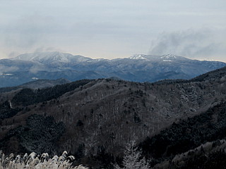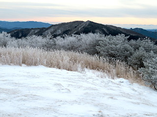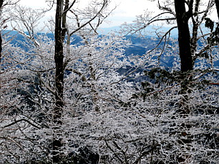 | 井山山頂から見る1200高地と大川入山 | 天狗棚山腹の霧氷 | |