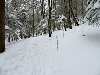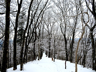 | 山行記 | ●今年に入っても新型コロナウイルス感染症の勢いが止まらず、愛知県でも緊急事態宣言の発出が検討されている。これでは、この時期ぜひとも行きたい、他県に行ってのスノーシューハイクや霧氷見物もなかなか行くことができない。 ●ところが新年になって寒波がやって来て、県内の山でも珍しく積雪を記録し、霧氷も見ることができそうな気温になった。ということで、スキー場のある茶臼山は三連休なので避けて、天狗棚へスノーシューを持って出かけることにした。 ●霧氷は朝早くが勝負になるのでなるべく早く出たかったが、準備に手間取り、結局朝7時頃の出発となった。途中、茶臼山高原道路の途中まで路上に雪が無く心配したが、面ノ木インターを出ると途端に雪が多くなり、霧氷も見ることができて一安心。 ●もう少し言えば、青空が出ていれば霧氷も映えるのでいいのだが、そう欲を言っても仕方がないので、まだ一台しか車が停まっていない面ノ木第一園地の駐車場に車を停めて準備を始めた。 ●まずは、霧氷の山肌が見たかったので、井山を目指す。駐車場の雪は融けかけていたが、スノーシューを履いて程好く雪の積もった林道を登っていく。途中雪が薄くてスノーシューが舗装路面に当たる箇所もあったが、概ねいい感じで歩くことができた。 ●林道を数回曲がると大きな風車が見え始め、周囲が開けてくる。木々やススキの穂先に霧氷が付いて面白い、登るにつれ天狗棚や1200高地の霧氷の山肌が見えてきて、遠くは恵那山や御岳なども見えてくる。 ●さらに登ると井山の展望台に着くので、その最高点までで登ると。隣の碁盤石山や奥三河の山々、さらに南アルプス、白山などを確認することができた。また、周囲の山肌の霧氷は素晴らしく、やはり、晴天であればもっと素晴らしかっただろう。 ●井山で少し過ごした後、一旦面ノ木第一駐車場まで戻り、今度は天狗棚を目指す。しだいに雪の融けていく駐車場をスノーシューでガリガリと歩き、登山口からは十分な雪がある斜面を登っていく。 ●途中で天狗棚と天狗棚展望台の分岐があるので、そこは天狗棚展望台方面へ進む。山腹に付けられた道はスノーシューで歩くにはやや狭く、雪の少ない箇所もあったが、なんとか尾根道まで登ることができた。 ●尾根道に出ると、後は少し上って、その後階段を下れば天狗棚展望台だ。展望台からは奥三河の山々はもちろん、恵那山や大川入山など、木々が邪魔になるが南アルプスも山々も見ることができた。 ●天狗棚展望台からは先程の合流点まで戻り、霧氷が見られる尾根道を進む。急な坂道を乗越すと面ノ木第一園地方面への下降点があるが、そこから少し登ると天狗棚山頂に着く。 ●天狗棚山頂は木々に囲まれ展望は無いが、木々の霧氷はいい感じで、青空ならばと重ね重ね考えてしまう。天狗棚山頂からは、もう少し雪歩きを楽しみたいので、1200高地まで足を延ばすことにした。 ●アップダウンを繰り返し、サラサラの雪を踏みしめながら歩くのは楽しいが、この日出会った数組の登山者は全てスノーシューではなく、まだまだスノーシューが一般的ではないことを感じた。 ●やがて、1200高地の登り口まで来ると1200高地への急坂を登る。スノーシューは急坂が苦手だが、ヒールアップをして何とか登り切ると三角点のある1200高地の山頂に着く。 ●1200高地山頂も展望は無いが、霧氷などを楽しんだ後下山にかかる。スノーシューは急坂の下降はさらに苦手だが、何とか下り、面ノ木第一園地駐車場まで戻った。 ●帰りは茶臼山高原道路で茶臼山の様子を見に行ったが、三連休というのにスキー客も疎らで、改めてコロナウイルス感染症の影響の大きさを感じた。そしてこの日は、温泉に寄るのも我慢して、どこにも寄らずに家へ帰った。 |