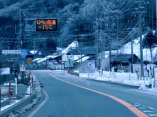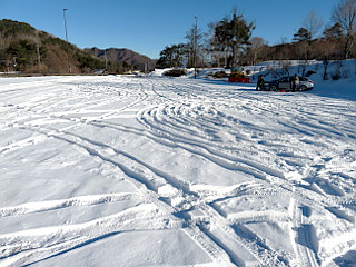 | 道の駅付近では見たことのない気温が | 除雪されていない治部坂高原駐車場 | 別荘地から右の馬の背、蛇垰山方面へ |