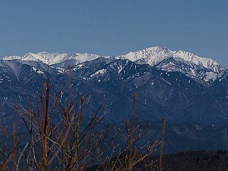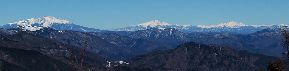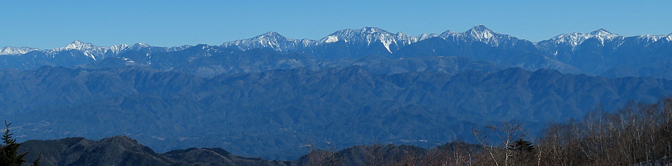 | 狼煙台跡から見る御岳と乗鞍岳、穂高岳などの北アルプス | ||