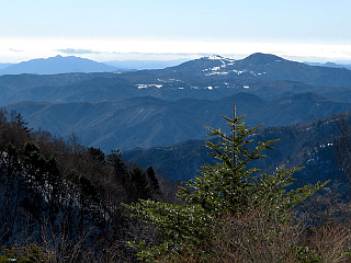| 山行記 | ●このような状況下、県外の山へ行くのは少々気が引けるが、雪を楽しむためにはどうしても少し足を延ばす必要があり、県外といっても愛知県のすぐ近くの山なので行ってみることにした。 ●大寒ということで、この日も朝は冷え込むということで、愛知県内から峠道には路上に雪が見られたが、なんとか通過することができ、平谷の道の駅でトイレ休憩。国道の気温表示では−15度という、なかなか見たことの無い気温を示していた。 ●ところが、それよりも標高の高い治部坂峠では逆に気温が上がり、治部坂駐車場に着いた時には、日差しもあり、むしろ暖かいといった感じがした。除雪のされていない治部坂駐車場で、帰りに脱出できそうな所に車を停めると、支度をして出発する。 ●別荘地の道路は除雪されているのでスノーシューを履かずに行くが、ブラックアイスバーン状態で、極力アスファルトが露出した所を選んで歩く。途中、馬の背、蛇峠山入口の表示があるので、そこで初めてスノーシューを履く。 ●気温が低いのでふかふかの新雪だが、踏み固められた上に積もった雪なので、それ程スノーシューも潜らず、キュッキュッと音がしていい感触だ。舗装道を渡ると遊歩道入口で、そこから快適な新雪のスノーシューの登りが始まる。 ●傾斜が急になってくると舗装道に出るのでそれを少し歩き、途中から再び山道に入る。新雪で、ウサギの足跡しか無い道は、一部雪が少なく地肌の露出した部分もあるが、それ以外は十分な雪で、吹き溜まりでは膝以上ぐらいまで潜る箇所もあった。 ●傾斜が増してくるがそれを登り切ると、突然周囲が開けて馬の背に着く。馬の背からは蛇峠山や大川入山が見えるが、展望案内板のある所まで行くとさらに展望が開け、中央アルプスや南アルプスに加え、乗鞍岳、北アルプスなども見ることができる。 ●この日は空気が澄んでいて遠望が利くのでいつまで見ていても飽きないが、この先にはもっと展望のいい場所があるので先へ進む。馬の背下の広場で林道と合流するが、冬季通行止なので車は入っていない。 ●蛇峠山へは案内に従い山道を登る、途中三度程舗装道に出るのが、三度目からはそのまま舗装道を登る。電波塔が林立する舗装道を登っていくと、右手に茶臼山や三ツ瀬明神山などの奥三河の山々が見えてくる。 ●さらに登っていくと白いドームが乗っかる蛇峠レーダ雨量観測所に着くが、その先が狼煙台後跡で、そこでは馬の背を凌ぐ大展望が得られる。馬の背の展望に加え、御岳や南アルプスの深南部、恵那山なども見ることができる。 ●狼煙台跡でまたまた長居した後蛇峠山山頂へ向かう。一旦緩やかに下った後登り返せば鉄製の展望台のある蛇峠山山頂に着く。展望台は周りの樹木が伸びてあまり展望は良くないが、それが無ければ南アルプスは深南部を含め全て見ることができる。 ●それでも、展望台は思った程風も無く晴れていて、むしろ暖かい感じなので、のんびり過ごすが、いつまでも居るわけにはいかず、後続の登山者も登ってきているので下山することにした。 ●途中もう一度狼煙台跡で展望を楽しみ、今度は、少し余分に時間がかかるが林道を下る。やはり林道は獣以外の踏み跡は無く、所々雪が深くて大変な所もあったが、馬の背下の広場まで快適に歩くことができた。 ●馬の背下からは、どうしようかと考えたが、雪も十分ありそうなので、そのまま林道を下ることにした。林道沿いは所々展望が開け、乗鞍岳や北アルプスなどを見ることができた。 ●馬の背下から回り込むと、往きに通った舗装道出合を見るが、そこからしばらく舗装道を下った所から除雪がされており、しばらくは雪の残る箇所を選んで歩くが、全面舗装が見えている部分もあり、途中からスノーシューを脱いで歩くことにした。 ●それでも、路上に残った雪はブラックアイスバーン状態で、滑らないように慎重に歩くので時間ばかりかかる。やはり、帰りも馬の背下からは山道を下る方が早かったようだ。車に戻ると、この状況の中なので、どこにも寄らずに自宅へ戻った。 |
