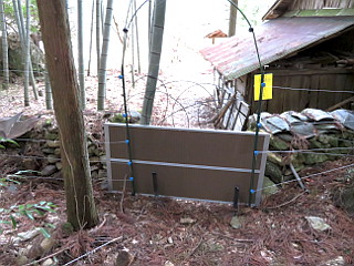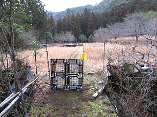| 高圧電気柵の入口 | 高圧電気柵の出口が河合富士登山口 | 岩を登る箇所が現れ始める |